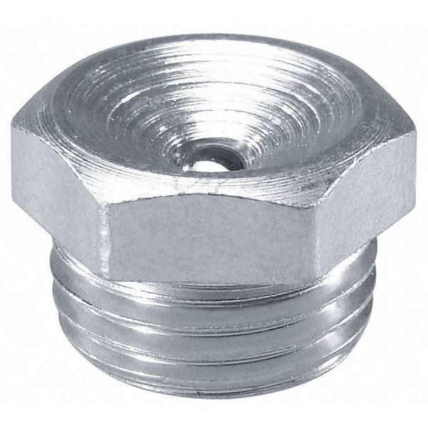 Grease Fitting, Grease Fitting Style Flush, Fitting Material Steel, Fitting Finish Zinc-Plated, Fitting Head Angle Straight, Fitting Thread Size 1/4 In.-28, Fitting Thread Type UNF, Overall Length 13/32 in, Max. Pressure 8000 psi, Meets/Exceeds SAE J-534-C and DIN 71412, Flush, Package Quantity 10