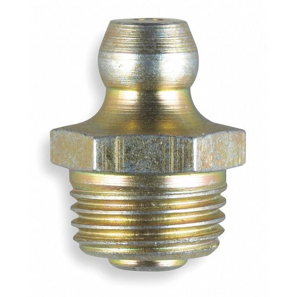 Grease Fitting, Grease Fitting Style Standard, Fitting Material Steel, Fitting Finish Zinc-Plated, Fitting Head Angle Straight, Fitting Thread Size 3/8 In.-24, Fitting Thread Type UNF, Overall Length 5/8 in, Max. Pressure 8000 psi, Meets/Exceeds SAE J-534-C and DIN 71412, Package Quantity 10