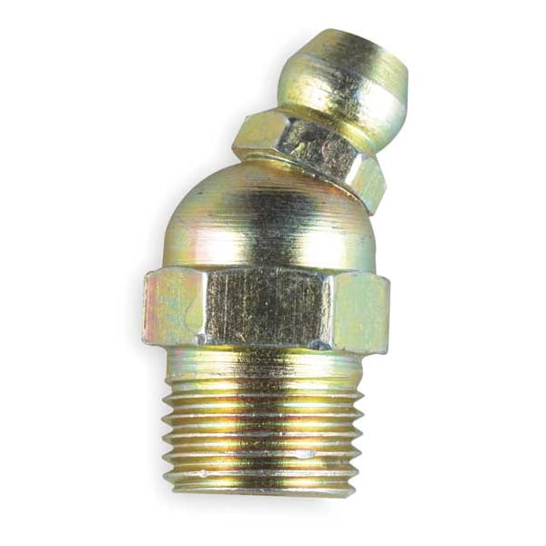 Grease Fitting, Grease Fitting Style Standard, Fitting Material Steel, Fitting Finish Zinc-Plated, Fitting Head Angle 30.0 Degrees , Fitting Thread Size 1/8 In.-27, Fitting Thread Type NPT, Overall Length 1 7/32 in, Max. Pressure 8000 psi, Meets/Exceeds SAE J-534-C and DIN 71412, Leakproof, Package Quantity 10