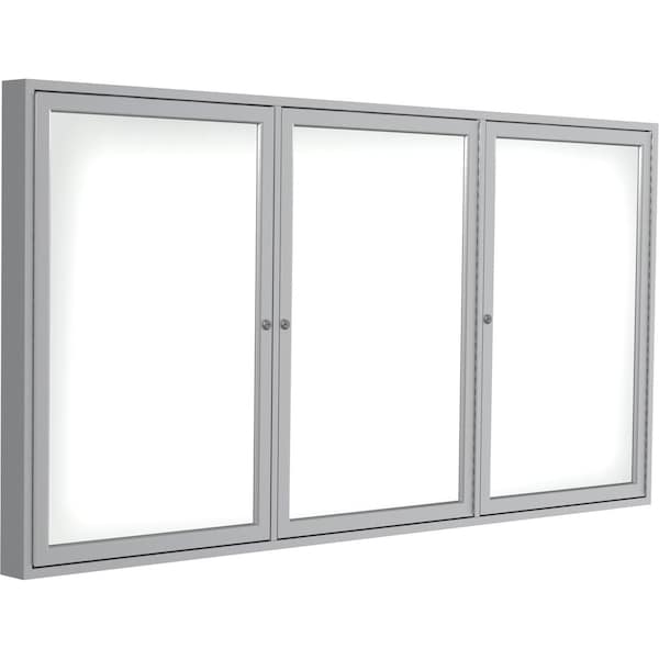 3-Door Enclosed Whiteboard 48"x96", Aluminum Frame, Satin