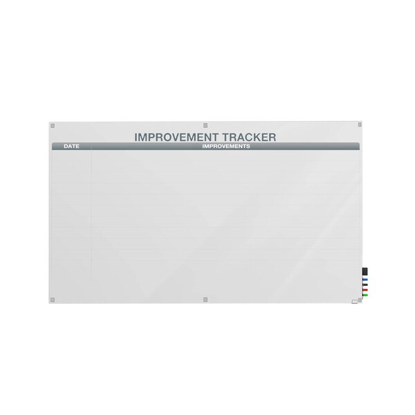 4'H x 6'W Improvement Tracker Graphics Glassboard with Stand-Offs, Square Corners, Magnetic