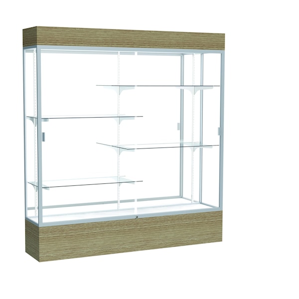 80''H x 72''W x 16''D Reliant Driftwood Oak Display Case w/ Mirror Back & Satin Frame