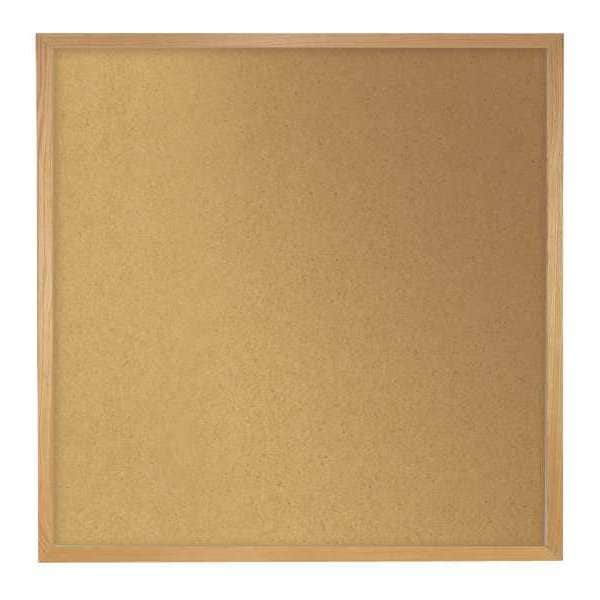 Bulletin Board, Board Material Cork, Board Color Natural, Board Frame Material Wood, Width 48 1/2 in, Height 48 1/2 in, Frame Color Oak, For Use Events, Offices, Schools, Includes Mounting Hangers, Board Style Push-Pin, Mounting/Mobility Type Wall Mounted