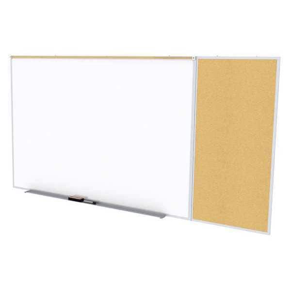 Combination Bulletin Board, Board Properties Magnetic, Mounting/Mobility Type Wall Mounted, Dry Erase Surface Type Cork, Dry Erase Height 48 7/16 in, Dry Erase Width 144 15/16 in, Dry Erase Surface Finish Matte, Includes 2 in Maprail, Accessory Tray, Eraser, L-Hangers, Marker, Board Frame Material Aluminum, Board Color White, Frame Color Silver, Combination Board, Width 144 15/16 in