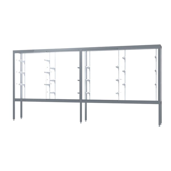 Display Case White 144x66x16, Satin, Aluminum Legs