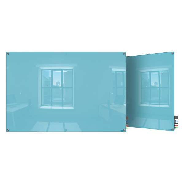 Dry Erase Board, Glass, 24 in, 36 in, No Frame Frame, Blue, Gloss