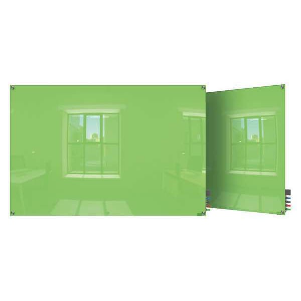 Dry Erase Board, Glass, 36 in, 48 in, No Frame Frame, Green, Gloss
