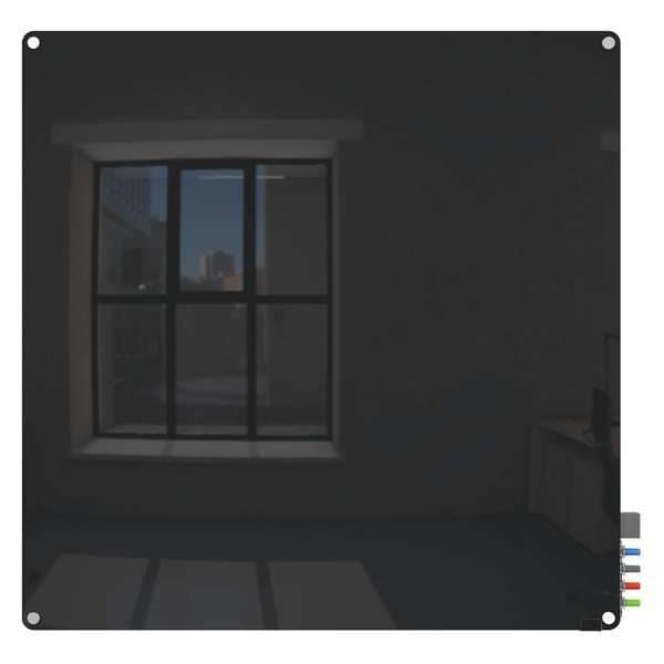 Dry Erase Board, Board Properties Magnetic, Mounting/Mobility Type Wall Mounted, Board Color Black, Dry Erase Height 48 in, Dry Erase Width 48 in, Depth 1 5/8 in, Dry Erase Surface Finish Gloss, Adjustable Height Range Not Adjustable, Frame Color Not Applicable, Board Frame Material No Frame, Frame Material Not Applicable, Dry Erase Surface Type Glass, Corner Shape Rounded, Includes (4) Markers, Magnets, Accessory Holder, Eraser, Stand-Offs, Standards BIFMA Certified, TAA Compliant