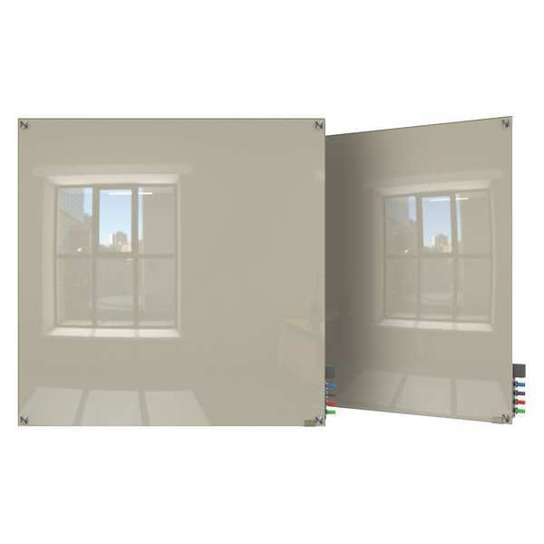 Dry Erase Board, Glass, 48 in, 48 in, No Frame Frame, Gray, Gloss