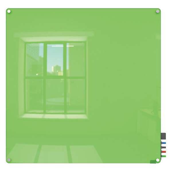 Dry Erase Board, Board Properties Magnetic, Mounting/Mobility Type Wall Mounted, Board Color Green, Dry Erase Height 48 in, Dry Erase Width 48 in, Depth 1 5/8 in, Dry Erase Surface Finish Gloss, Adjustable Height Range Not Adjustable, Frame Color Not Applicable, Board Frame Material No Frame, Frame Material Not Applicable, Dry Erase Surface Type Glass, Corner Shape Rounded, Includes (4) Markers, Magnets, Accessory Holder, Eraser, Stand-Offs, Standards BIFMA Certified, TAA Compliant