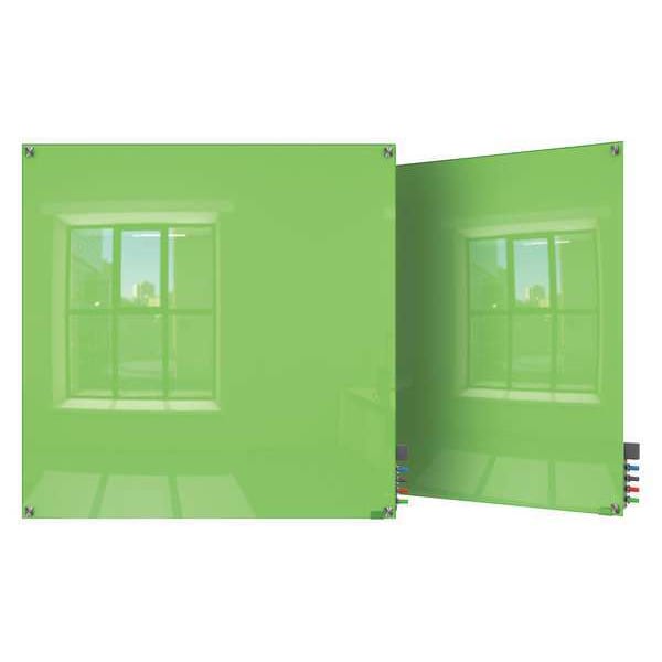 Dry Erase Board, Glass, 48 in, 48 in, No Frame Frame, Green, Gloss