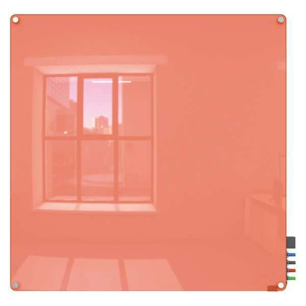 Dry Erase Board, Board Properties Non-Magnetic, Mounting/Mobility Type Wall Mounted, Board Color Peach, Dry Erase Height 48 in, Dry Erase Width 48 in, Depth 1 5/8 in, Dry Erase Surface Finish Gloss, Adjustable Height Range Not Adjustable, Frame Color Not Applicable, Board Frame Material No Frame, Frame Material Not Applicable, Dry Erase Surface Type Glass, Corner Shape Rounded, Includes (4) Markers, Accessory Holder, Eraser, Stand-Offs, Standards BIFMA Certified, TAA Compliant