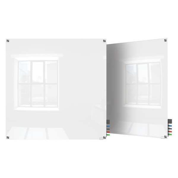 Dry Erase Board, Board Properties Non-Magnetic, Mounting/Mobility Type Wall Mounted, Board Color White, Dry Erase Height 48 in, Dry Erase Width 48 in, Depth 1 5/8 in, Dry Erase Surface Finish Gloss, Adjustable Height Range Not Adjustable, Frame Color Not Applicable, Board Frame Material No Frame, Frame Material Not Applicable, Dry Erase Surface Type Glass, Corner Shape Square, Includes (4) Markers, Accessory Holder, Eraser, Stand-Offs, Standards BIFMA Certified, TAA Compliant