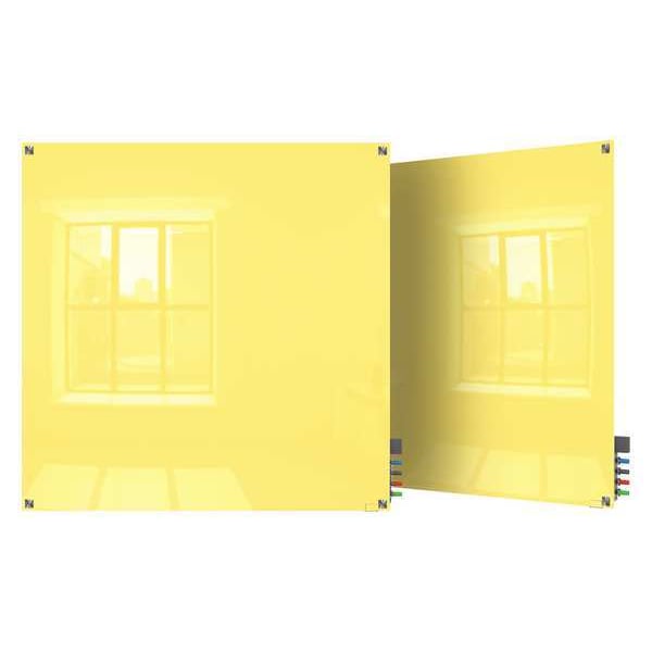 Dry Erase Board, Glass, 48 in, 48 in, No Frame Frame, Yellow, Gloss
