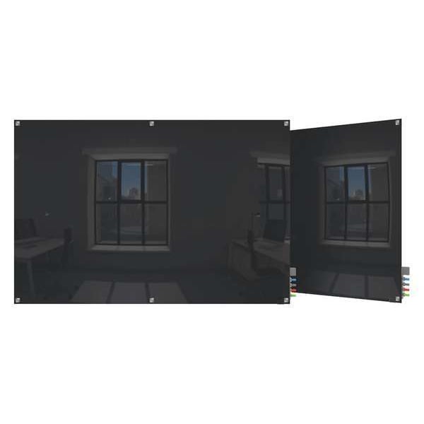 Dry Erase Board, Glass, 48 in, 72 in, No Frame Frame, Black, Gloss