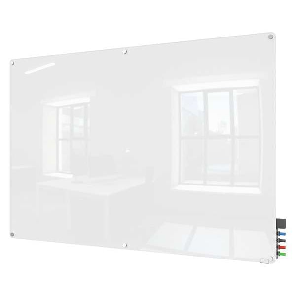 Dry Erase Board, Glass, 48 in, 72 in, No Frame Frame, White, Gloss