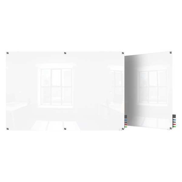 Dry Erase Board, Glass, 48 in, 72 in, No Frame Frame, White, Gloss