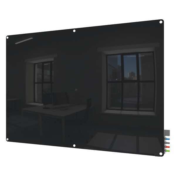 Dry Erase Board, Glass, 48 in, 96 in, No Frame Frame, Black, Gloss
