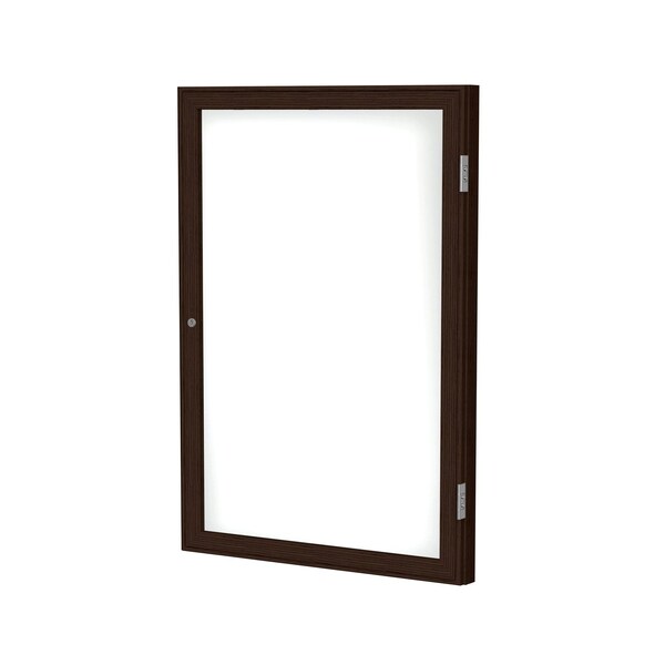 Enclosed Whiteboard, 1 Door, Por/Mag, Walnut Frame, 3 ft H x 2 ft W, White