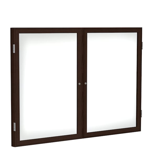 Enclosed Whiteboard, 2 Door, Por/Mag, Walnut Frame, 3 ft H x 5 ft W, White