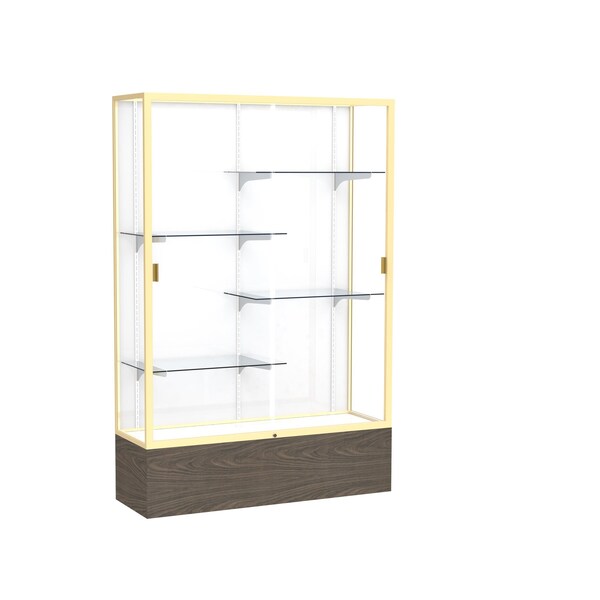 Waddell's Reliant Series combines the strength and durability of aluminum with either woodgrain vinyl or oak veneer to frame your accolades. These six-foot display cases are available in three select widths or with an option of a smaller three-foot high case, as well. Anodized aluminum framing that is available in Champagne, Dark Bronze or Natural Satin secures the sliding glass doors and incorporates a built-in lock for a protected display of your treasured memorabilia. Illuminate and customize your display with a lighted cornice and 4 half-length adjustable shelves. With Reliant, you have the opportunity to make a display that is something truly your own. The accent wood completes the design for a clean and uncluttered appearance making Reliant display cases accommodating to either a traditional or contemporary setting. All cases ship to you in Waddell’s exceptional packaging and come fully assembled. Reliant is backed by Waddell's Limited Lifetime Warranty and made in the USA.