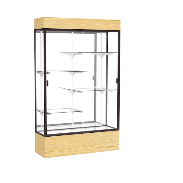 Waddell's Reliant Series combines the strength and durability of aluminum with either woodgrain vinyl or oak veneer to frame your accolades. These six-foot display cases are available in three select widths or with an option of a smaller three-foot high case, as well. Anodized aluminum framing that is available in Champagne, Dark Bronze or Natural Satin secures the sliding glass doors and incorporates a built-in lock for a protected display of your treasured memorabilia. Illuminate and customize your display with a lighted cornice and 4 half-length adjustable shelves. With Reliant, you have the opportunity to make a display that is something truly your own. The accent wood completes the design for a clean and uncluttered appearance making Reliant display cases accommodating to either a traditional or contemporary setting. All cases ship to you in Waddell’s exceptional packaging and come fully assembled. Reliant is backed by Waddell's Limited Lifetime Warranty and made in the USA.
