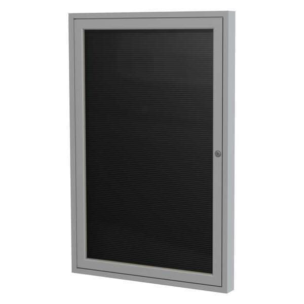 Enclosed Bulletin Board, Letter Board, Board Material Felt, Width 30 in, Height 36 in, Board Frame Material Aluminum, Frame Color Silver, Board Color Black, Number of Doors 1, Door Type Swing, Includes (2) Keys, 3/4 in Letter Set, Mounting/Mobility Type Wall Mounted, Door Material Aluminum, Indoor Enclosed Bulletin Board
