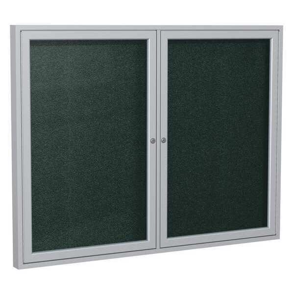 Enclosed Bulletin Board, Push-Pin, Board Material Vinyl, Width 48 in, Height 36 in, Board Frame Material Aluminum, Frame Color Silver, Board Color Black, Number of Doors 2, Door Type Swing, Includes (2) Keys, Mounting/Mobility Type Wall Mounted, Door Material Aluminum, Outdoor Enclosed Bulletin Board