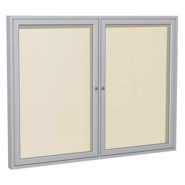 Enclosed Bulletin Board, Push-Pin, Board Material Vinyl, Width 48 in, Height 36 in, Board Frame Material Aluminum, Frame Color Silver, Board Color Ivory, Number of Doors 2, Door Type Swing, Includes (2) Keys, Mounting/Mobility Type Wall Mounted, Door Material Aluminum, Outdoor Enclosed Bulletin Board
