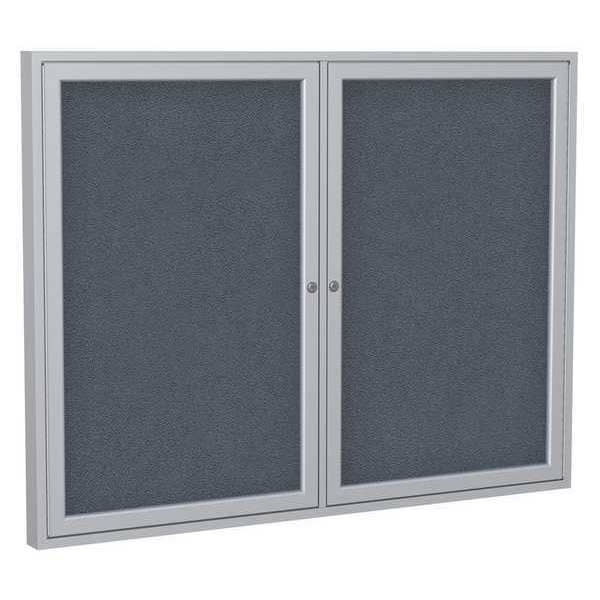 Enclosed Bulletin Board, Push-Pin, Board Material Fabric/Fiberboard, Width 60 in, Height 36 in, Board Frame Material Aluminum, Frame Color Silver, Board Color Gray, Number of Doors 2, Door Type Swing, Includes Keys, Lock, Mounting/Mobility Type Wall Mounted, Door Material Aluminum, Indoor Enclosed Bulletin Board