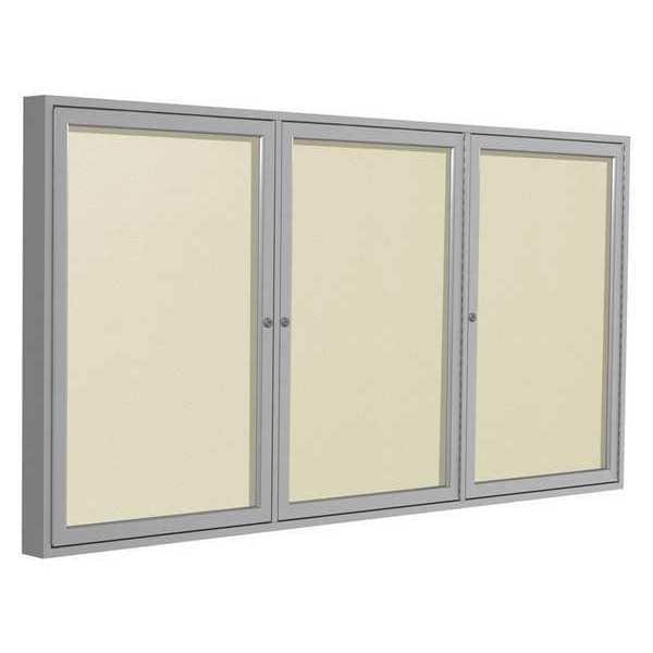 Enclosed Bulletin Board, Push-Pin, Board Material Vinyl, Width 96 in, Height 48 in, Board Frame Material Aluminum, Frame Color Silver, Board Color Ivory, Number of Doors 3, Door Type Swing, Includes (2) Keys, Mounting/Mobility Type Wall Mounted, Door Material Aluminum, Outdoor Enclosed Bulletin Board