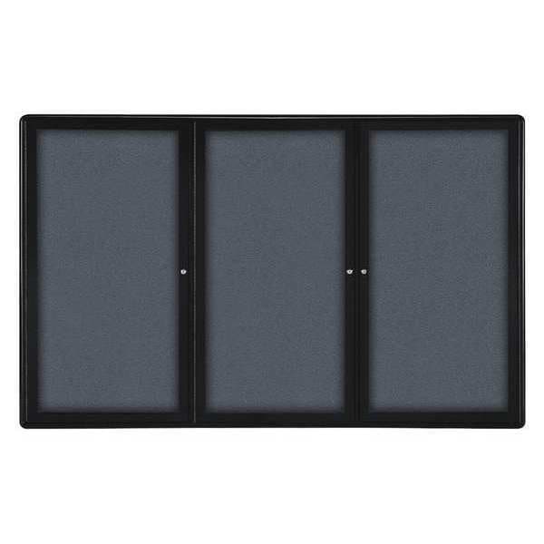 Enclosed Bulletin Board, Push-Pin, Board Material Fabric/Fiberboard, Width 72 1/8 in, Height 48 1/8 in, Board Frame Material Aluminum, Frame Color Black, Board Color Gray, Number of Doors 3, Door Type Swing, Includes (2) Keys, Mounting/Mobility Type Wall Mounted, Door Material Hinged, Indoor Enclosed Bulletin Board