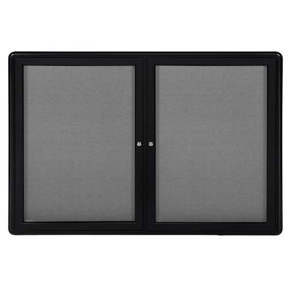 Enclosed Bulletin Board, Push-Pin, Board Material Fabric, Width 47 in, Height 34 in, Frame Color Black, Board Color Mauve, Number of Doors 1, Includes Locks
