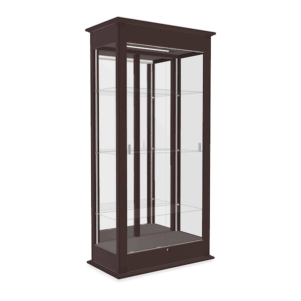 Varsity Wood Display Case, Lighted, Modern Cherry Oak, Mirror Back, 77''H x 36''W x 18''D
