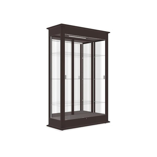 - Built-in lighted cornice highlights your collection