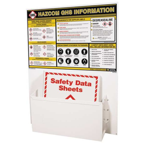 Information Center, Binder Holder Material Plastic, Binder Material Plastic, Binder Ring Size 2 1/2 in, Document Storage Component Color White, Hazard Communication Standard GHS, Included Hardware (1) 1 1/2 in Safety Data Sheet 3-Ring Binder, Included Supplemental Materials Not Applicable, Language English, Mounting Hardware Included No, Mounting Style Holder with Sign, Number of Binder Holders Not Applicable, Number of Binders Included Not Applicable, Overall Depth 4 1/2 in