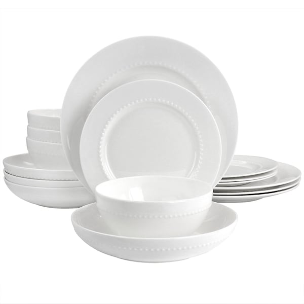 Embossed Bone China 16 Piece Double Bowl Dinnerware Set in White