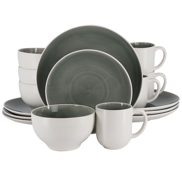 Serenity Crackle Glazed 16 Piece Stoneware Dinnerware Set in Grey and White