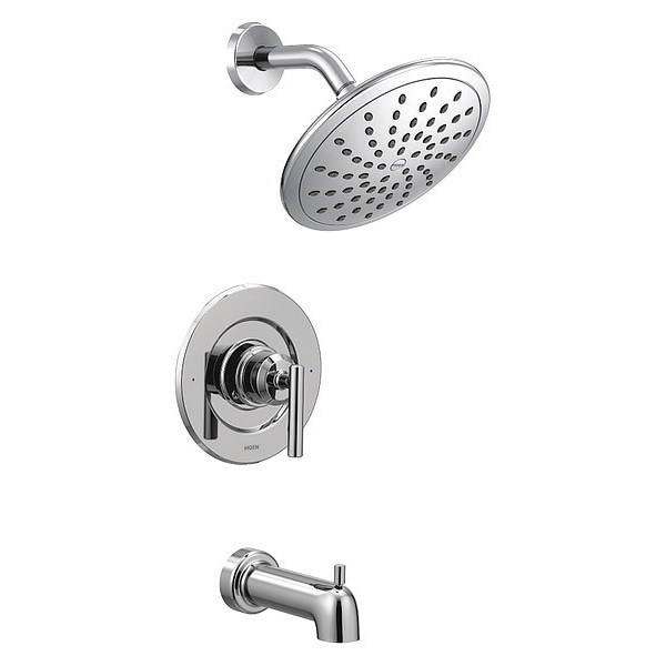 Tub and Shower Trim Kit, ADA Compliance Yes, CEC Compliant, Connection Size 5/8 in, IPS, Face Shape Circle, Fixed Showerhead Flow Rate 1.75 gpm, Fixed Showerhead Width 8 in, Moen, Gibson Posi-Temp T3003EP Series, Shower Connection Type IPS, Showerhead Function Single, Showerhead Material Metal, Plastic, Showerhead Shape Flat Circle, Showerhead Spray Pattern Regular, Wall Mounted, Trim Finish Chrome, Pull Up Diverter Spout