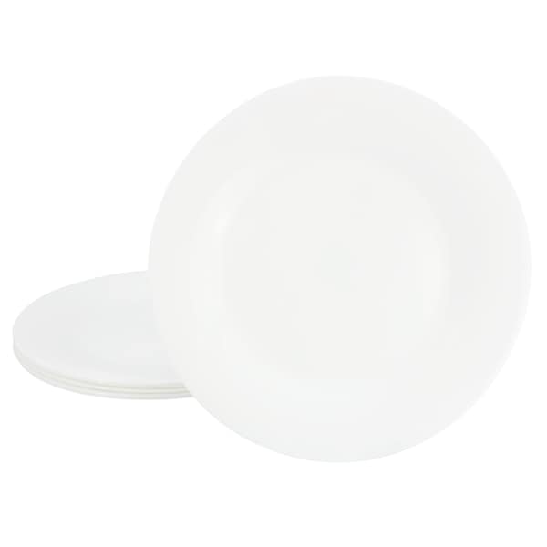 Ultra White Shadow 6 Piece 10 Inch Opal Glass Dinner Plate Set in White