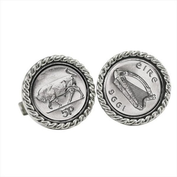 Add a little bull and blarney to your attire with the . The copper nickel coins are layered in silver and set in a rope bezel with a bullet back. One cuff link shows the harp, the national symbol of Ireland, the obverse of the coin. The other cuff link shows the bull, designed by Percy Metcalfe, the reverse of the coin. Together the cuff links will add a wee bit of Irish to your shirt. A Certificate of Authenticity is included.