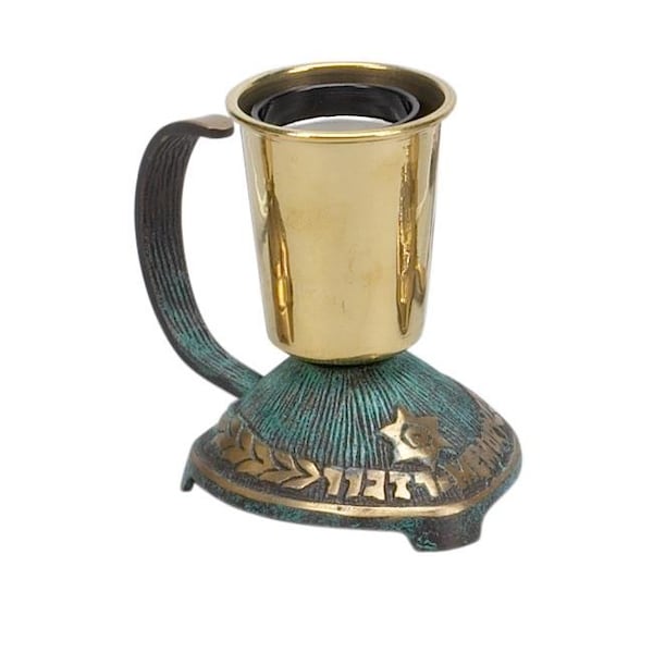 The Plug In Yahrzeit Brass (Green High Lights) Electric Memorial with a Carry Handle Design, comes complete with its own bulb that illuminates inside the Brass Holder.