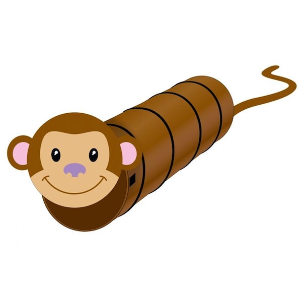 Gigatent Hide and Seek Tunnels will give your child hours of fun and enjoyment. Designed to look like a cute and playful monkey this tunnel will quickly find a place in your child s heart. Made of 170T 600 millimeter coated polyester with a wrapped steel spring frame sewn into a sleeve for safety. This tunnel will last for years of play. By attaching the head using the loops and toggles you can close off one end to provide a hiding place while leaving one end open for ventilation and escape. The tunnel comes complete with storage bag. The tunnel measures 6 feet long and 20 inches in diameter which will allow larger children to play in the tunnels as well.
