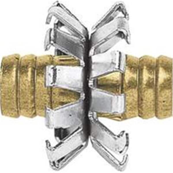 Features -For repairing plastic or rubber hose. -Clincher fingers hold coupler onto hose. -Recommended for rubber hot water hose. -Brass -Size - 1/2 in.
