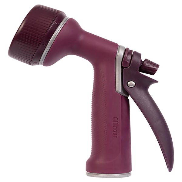 The Gilmour Rear Control Watering Nozzle features enhanced water flow for more efficient watering and 7 pre-set spray patterns to cover every watering need. A one-handed lock holds the trigger in place for comfortable, continuous use, while its ergonomically designed handle has a slip-resistant grip for secure control. Easily adjust the head to any of the refined patterns: flat, fan, center, full, mist, jet and garden. This nozzle's metal water passage provides durability and ensures long life.