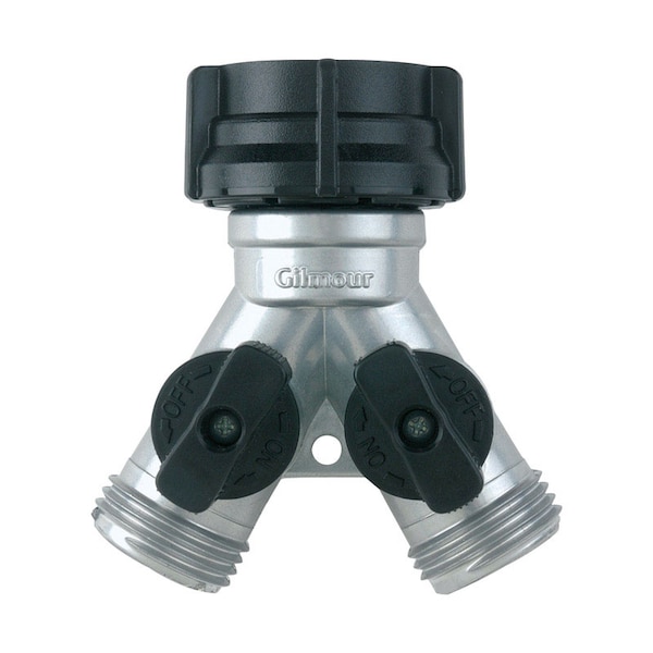 Gilmour Zinc Threaded Male Y-Hose Connector with Shut Offs