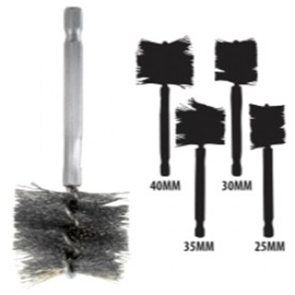 Durable.-1/4in Hex and 3in clean overall length.-Clean brake calipers throttle bodies tubes fittings and much more. 8037 consists of 25mm 30mm 35mm and 40mm Stainless Steel twisted wire bore brushes with 1/4in hex shanks.Each Size: i