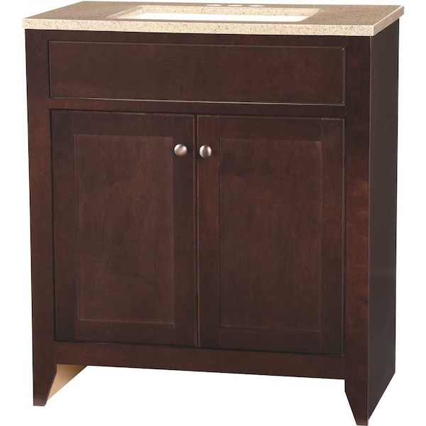 Modular 30.5 in. W Bath Vanity in Java with Solid Surface Vanity Top in Cappuccino with White Sink (Discontinued)