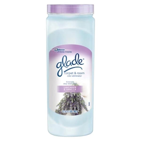 Glade Carpet & Room Eliminate deep down odors on carpets and rugs and freshen your home with the simple soothing scent of lavender and warm vanilla to ensure you always have something soft and loving to come home to. Eliminates deep-down odors. Freshen up your living room bedroom den. Specially formulated to fight even the toughest cooking pet and bathroom odors. Also perfect for elimnating smoke and mold & mildew odors.