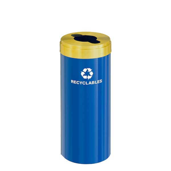 12 gal Round Recycling Bin, Blue/Satin Brass
